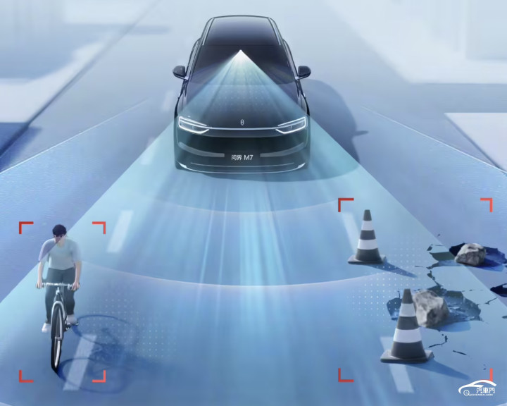 智能辅助驾驶是全新问界M7的一大升级重点。据官方称,新车将首搭乾崑舱内激光视觉方案,该方案相比主视觉辅助驾驶方案,主动安全能力更强;同时新增紧急转向辅助ESA,支持恶劣光线环境下的障碍物检测,可识别锥桶等障碍物。不仅如此,新车还搭载了华为最新的ADS4.0高阶智驾系统,配备一颗192线顶置激光雷达和多达12颗超声波雷达。结合11颗摄像头,能够实现厘米级的环境建模。
