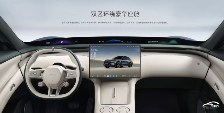 在智能化方面,小米YU7最大的亮点来自于新增的小米天际屏全景显示,该屏幕提供了车辆速度信息、导航信息、多媒体信息等,相比SU7的仪表屏和抬头显示,新的环视投影屏位于中控台之上,减少驾驶员低头的频次,同时屏幕的显示效果也更理想。