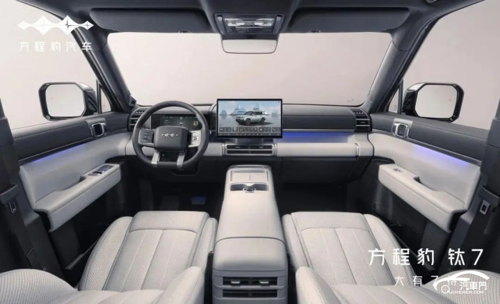 具体来看,方程豹钛7采用了星际方舟设计语言。整车外观设计方正有形大气十足,线条秩序井然,车身体量感十足,造型时尚吸睛,辨识度极高。新车的长宽高分别为4999mmX1995mmX1865mm,轴距为2920mm,尺寸介于豹5与豹8之间。官方称,方程豹钛7得房率高达70.9%。