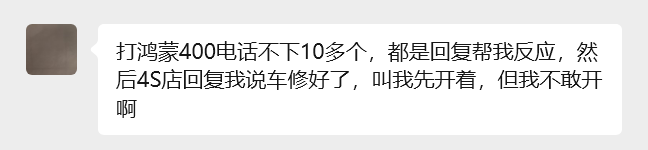 期间,张先生拨打鸿蒙 400 电话不下 10 次,对方均回复 “帮其反应”;4S 店则多次告知张先生 “车已修好,叫其先开着”。