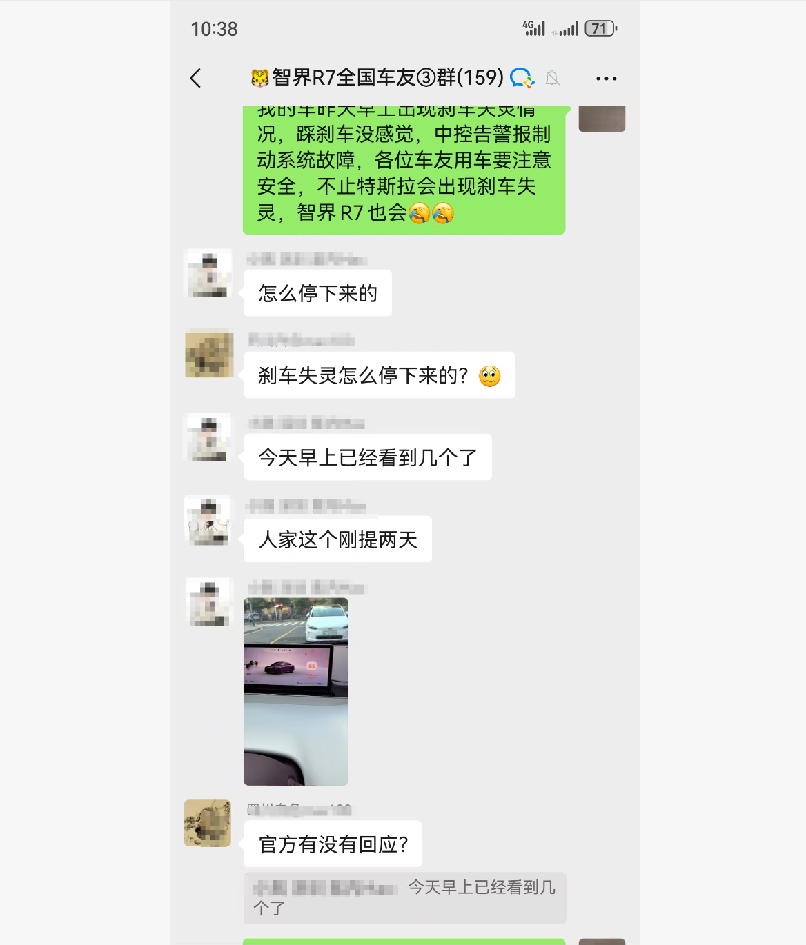 此外,张先生表示,在全国车友群中,已有两名车友反映遭遇过相同的车辆刹车故障情况。截至目前,张先生仍不敢再开这款车。针对此事进展,我们也将持续关注。